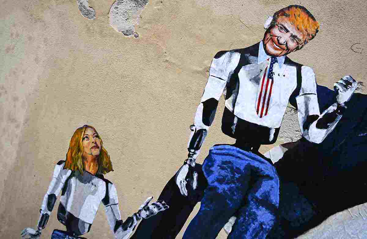 La stessa scena è stata ricostruita con una tuta da lavoro, appesa per i piedi a un cancello ai bordi della piazza, alle cui estremità è stata posizionata la faccia di Elon Musk, il multimiliardario proprietario di X, Tesla e Space X che nel corso delle ultime elezioni ha affiancato in prima persona l’elezione del nuovo presidente americano Donald Trump.