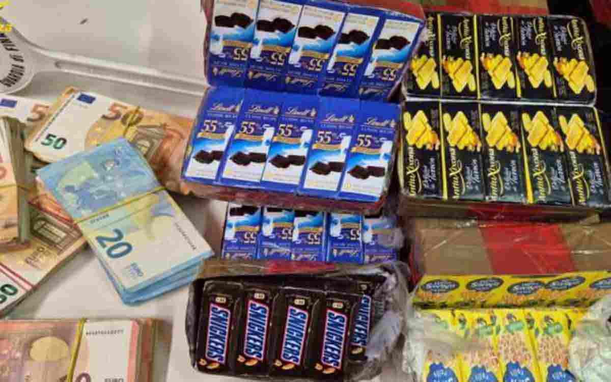 La Guardia di Finanza ha scoperto 30 chili di hashish celati in confezioni di barrette di cioccolato e merendine, arrestando tre persone per traffico di stupefacenti