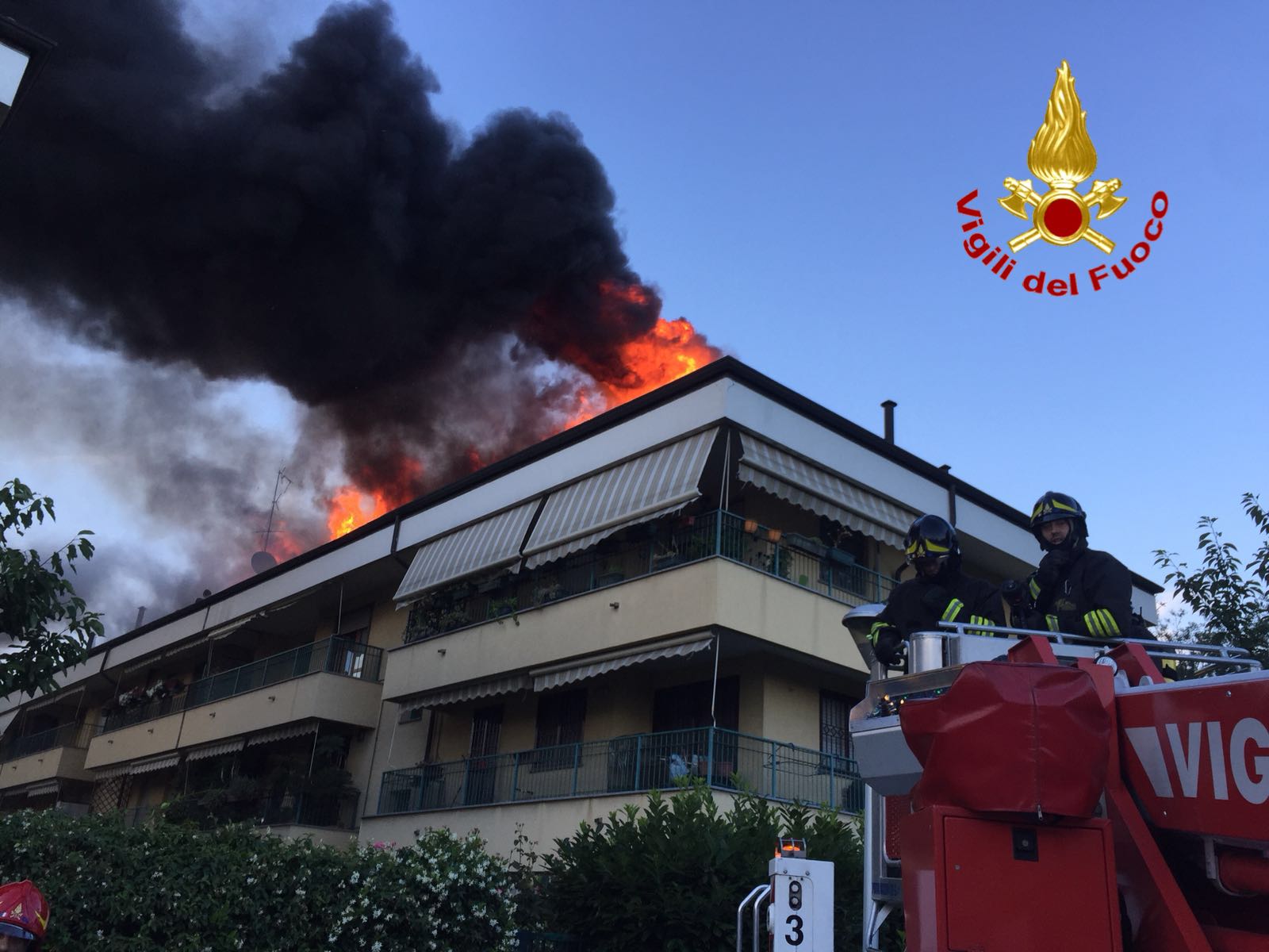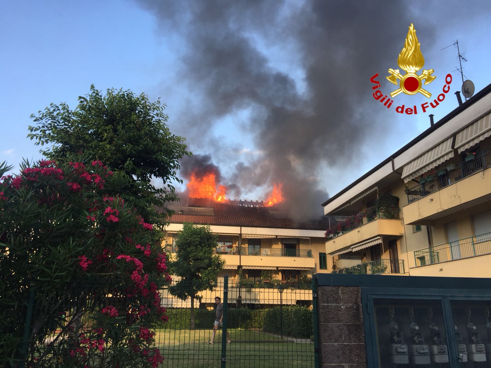 Questa sera ad Arese, comune a nord di Milano i Vigili del Fuoco sono dovuti intervenire per un incendio sul tetto di una palazzina di tre piani in via Enrico Cantù. Cinque gli appartamenti coinvolti dall’ incendio. Evacuata tutta la palazzina con più di 30 famiglie e persone in strada. Ancora non chiara la dinamica dell’accaduto.
