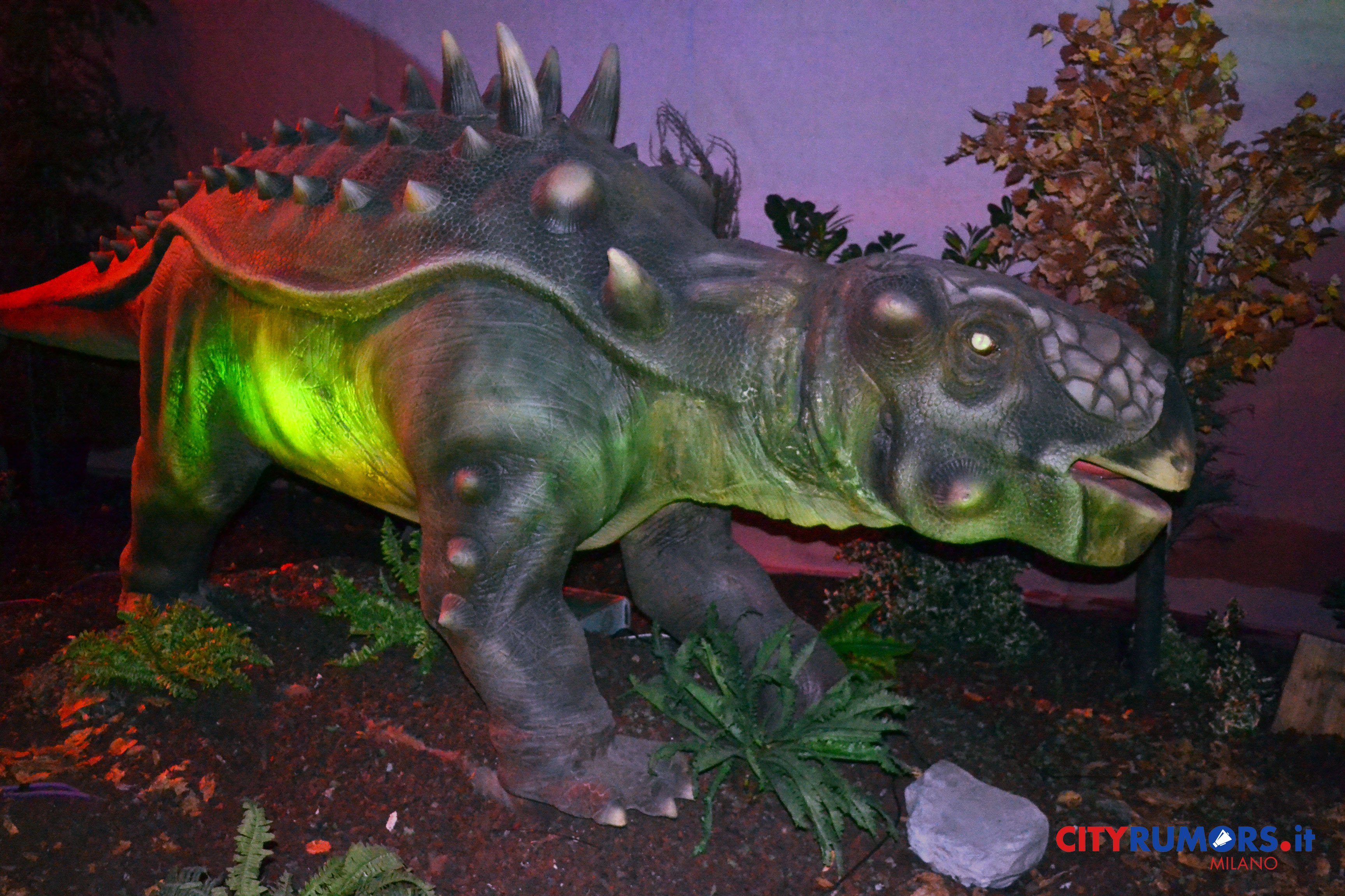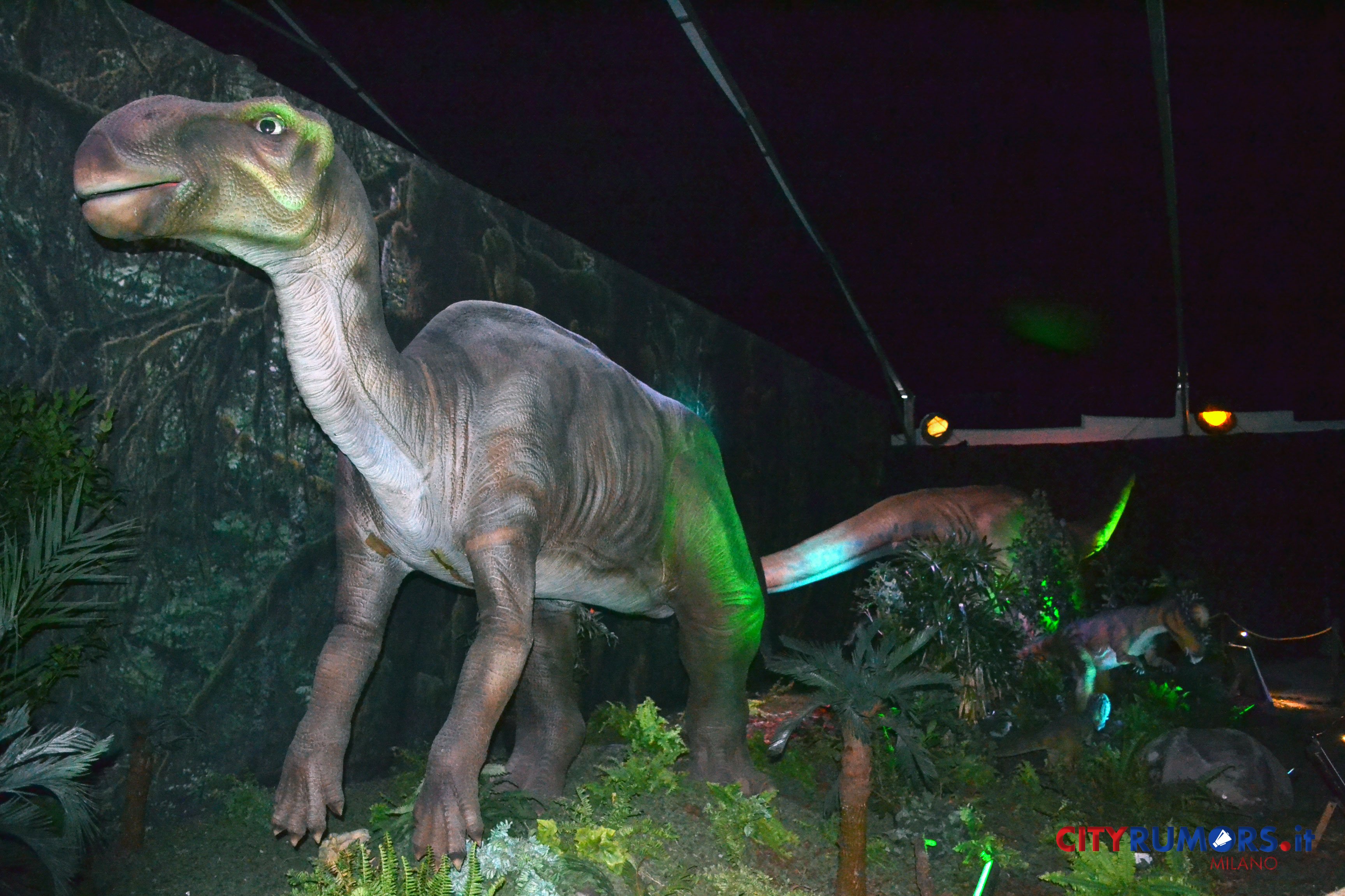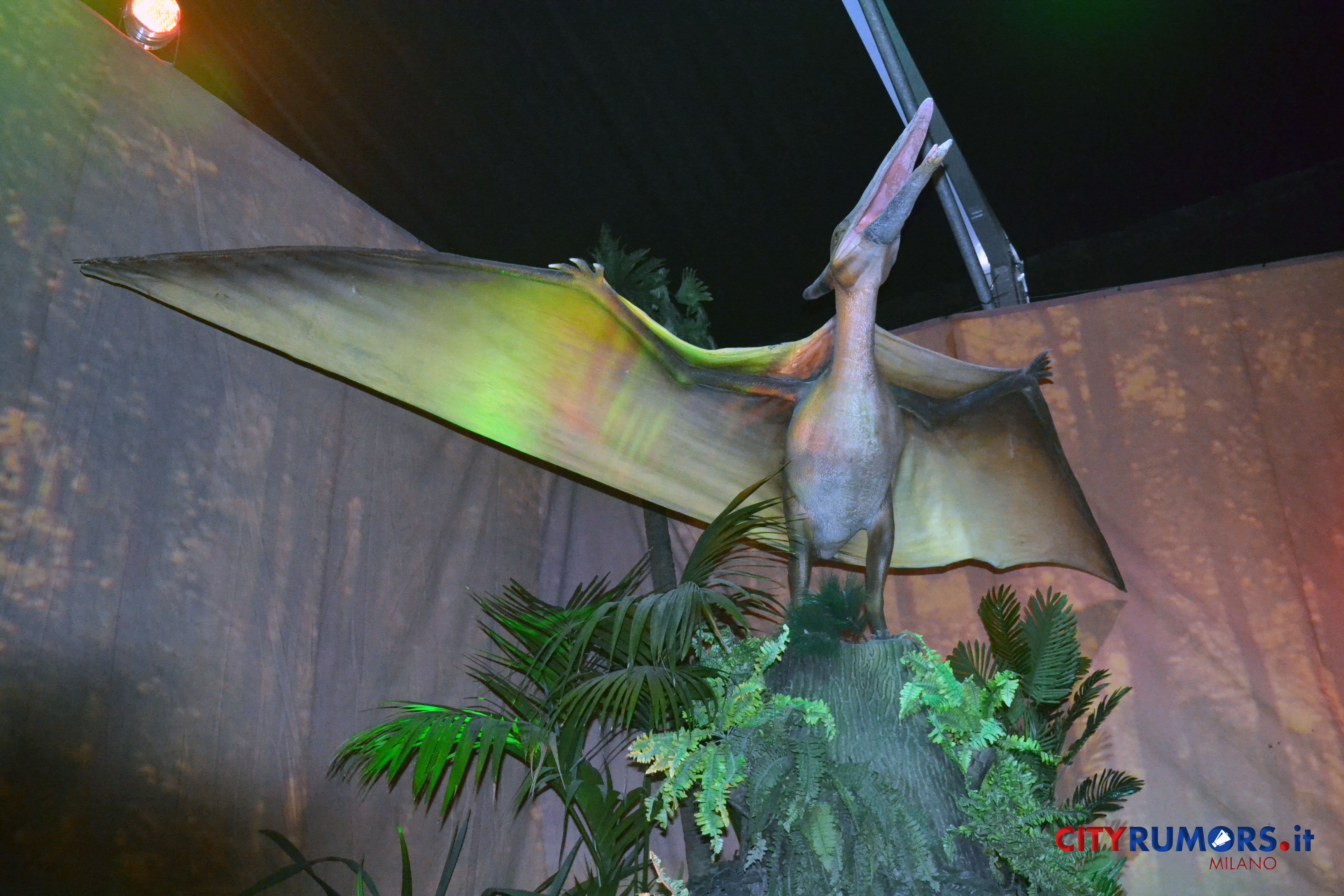Sono 30, suddivise in 17 diverse ambientazioni, le fedelissime riproduzioni di queste grandi creature progettate e costruite seguendo le indicazioni di un team di esperti paleontologi grazie ai quali è stato possibile riprodurre fedelmente non solo l’aspetto degli antichi abitanti del pianeta terra ma anche i loro movimenti e comportamenti. Sotto la pelle corrugata ci sono infatti robot intelligenti guidati dalla tecnologia animatronics, grazie ai quali le copie dei dinosauri emettono suoni gutturali, muovono la testa e la coda, respirano, aprono e chiudono gli occhi, dispiegano le ali per librarsi in volo, come il Ptenarodon (“ali senza denti”, ndr), con la sua apertura alare fino a 25 metri, vissuto 80 milioni di anni fa, che aspetta i curiosi lungo il percorso della mostra appollaiato su un picco montuoso.