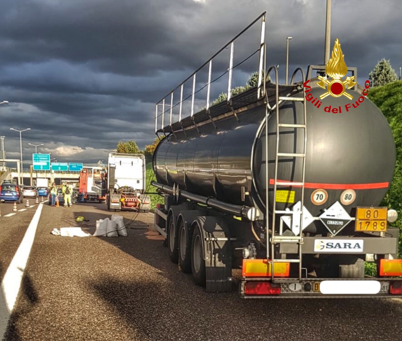 A dare la notizia i Vigili del Fuoco che con il nucleo NCBR (NUCLEARE – BIOLOGICO – CHIMICO – RADIOLOGICO) ed altri mezzi, hanno bloccato subito la perdita con tecniche idonee ed hanno atteso un’altra cisterna per il travaso della sostanza.