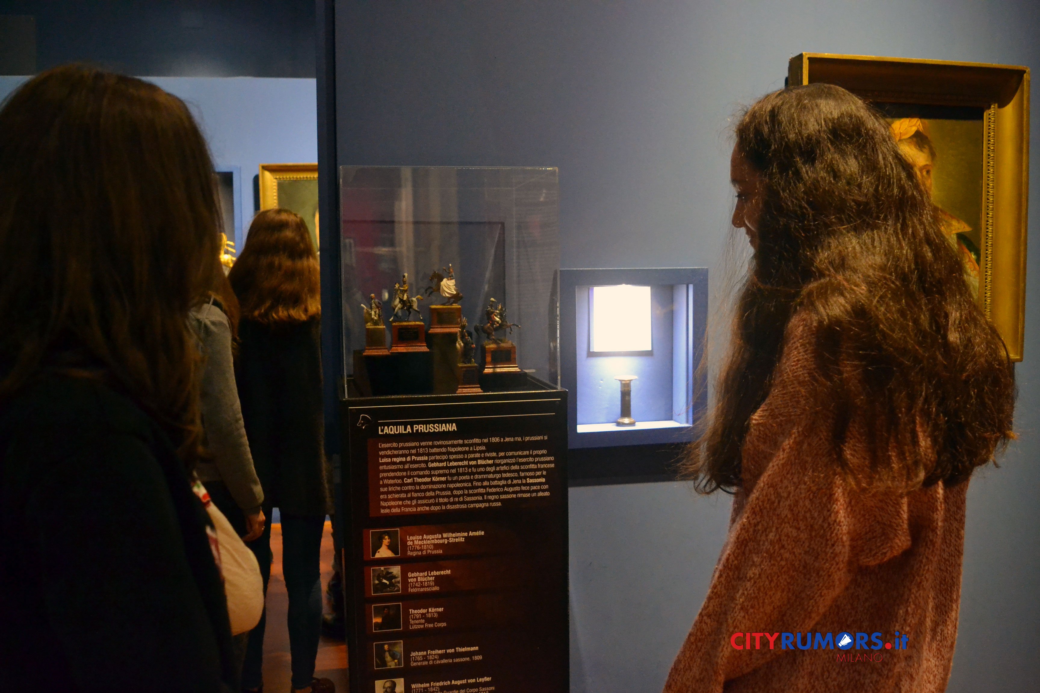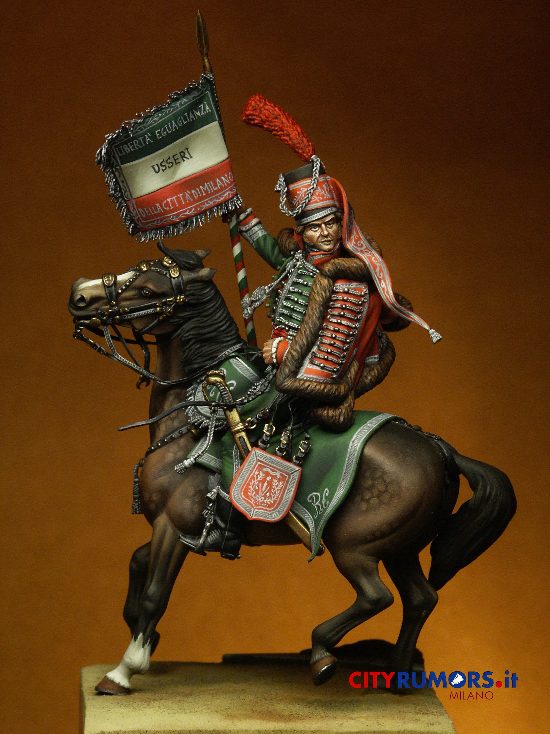 C’è infine il conte Arese Lucini, comandante degli Ussari di Requisizione della città, nel 1805 capitano della Guardia d’Onore che scorta l’imperatore Napoleone durante l’incoronazione a re d’Italia. Veste l’uniforme da ussaro ricostruita proprio grazie ai reperti conservati nel Museo del Risorgimento, e sventola orgoglioso lo stendardo di reparto che riproduce esattamente, per scritte e dimensioni, il rarissimo originale conservato nella stessa sala espositiva.