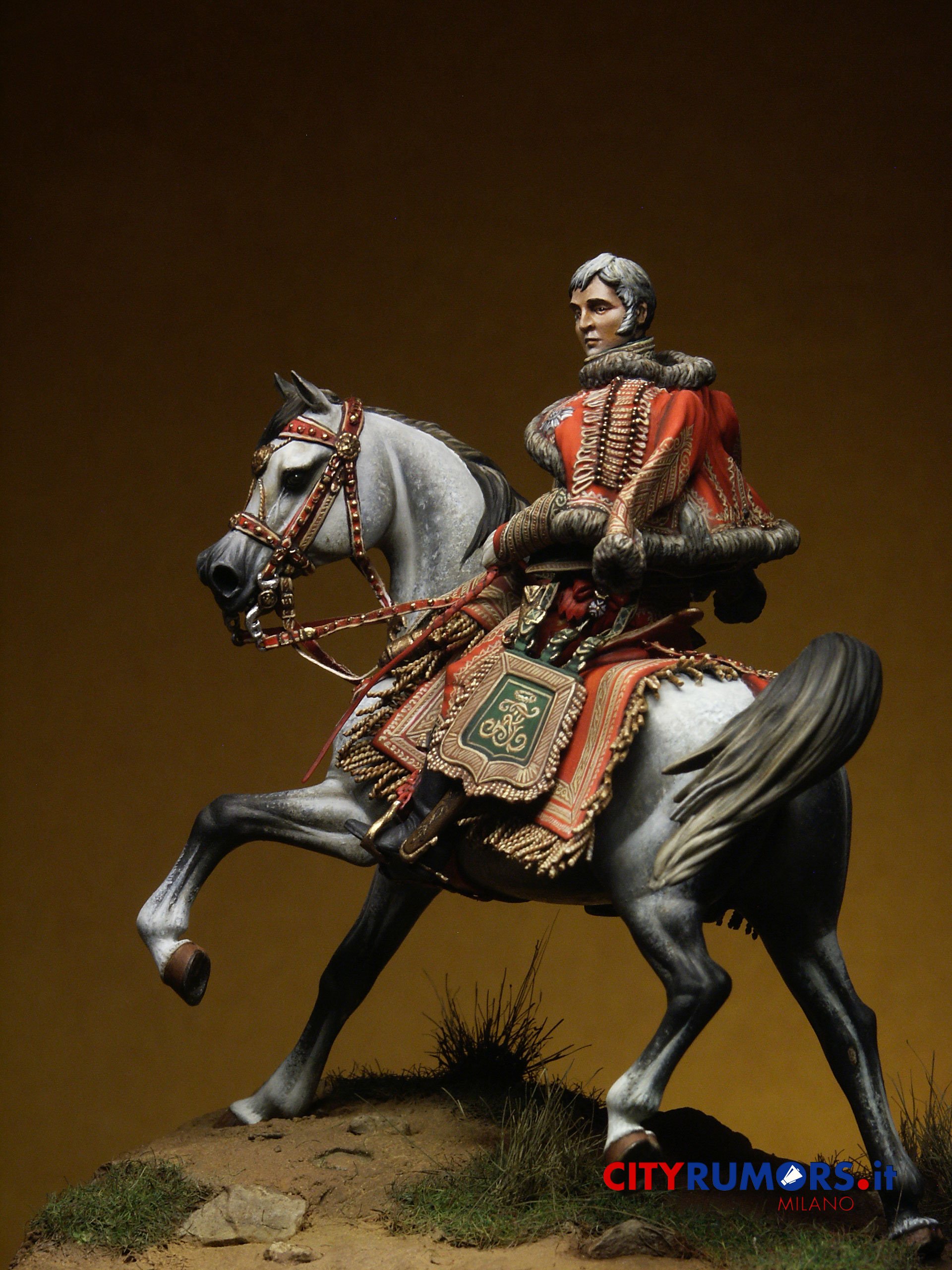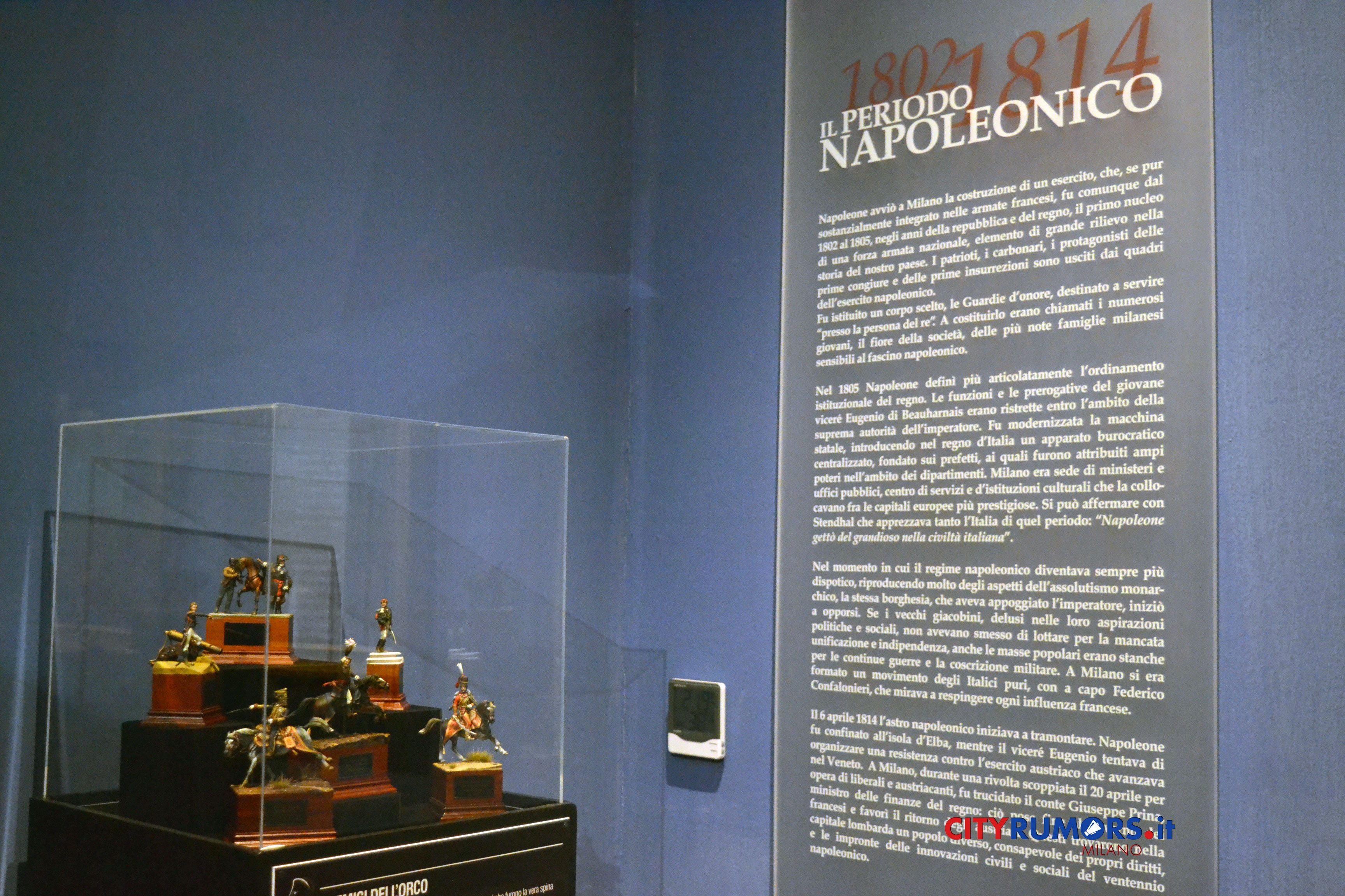 La mostra “Il volto del comando” occupa le prime tre sale espositive di Palazzo Moriggia, quelle legate ai prodromi del Risorgimento di cui Napoleone ha posto le basi, cacciando gli austriaci da Milano nel 1796 e diffondendo gli ideali di libertà, uguaglianza e fraternità della Rivoluzione francese. Dalla quarta sala inizia infatti un’altra storia, quella della Restaurazione, con il ritorno dei governo asburgico a Milano e la dura repressione delle libertà e dei diritti dei cittadini, che porterà in breve alle barricate delle Cinque Giornate. Il Bonaparte riposa da cinque lustri ma, anche grazie alla mostra dei “soldatini” di Allevi e Cartacci, è come se la sua ombra si aggirasse ancora tra i quadri e i cimeli del Risorgimento milanese sostenendo idealmente gli insorti contro l’ottantaduenne indomito feldmaresciallo Radetzky. A cavallo, naturalmente, con indosso un’anonima redingote grigia e comodi stivali da cavalleria.
