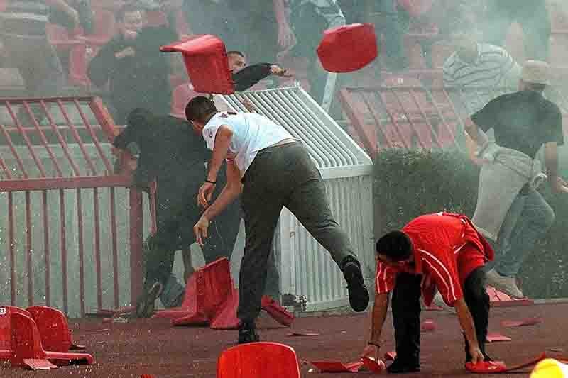 La partita inizia in ritardo di mezz’ora e viene sospesa prima temporaneamente, per sette minuti, e poi definitivamente poco dopo il calcio d’inizio. Il pubblico viene invitato a lasciare gli spalti mentre la tifoseria serba viene in qualche modo ad arginata dall’intervento delle forze dell’ordine che evita il peggio. Partita annullata, sconfitta a tavolino della squadra serba 0-3, due partite a porte chiuse, una con la condizionale con vendita di biglietti proibita ai tifosi serbi per tutte le partite in trasferta dei due anni successivi.